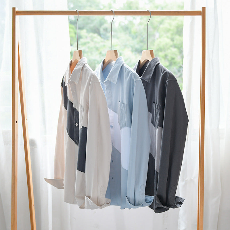 Men's Clothing Leather Stitching Long-sleeved Shirt